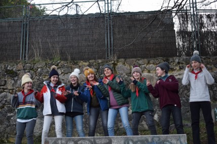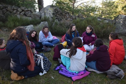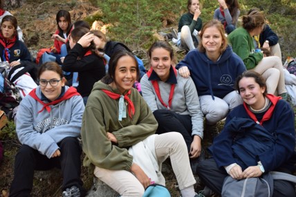 A la vez que íbamos descendiendo, rezamos el rosario a María por patrullas y al terminar, nos detuvimos para disfrutar del concurso de villancicos que todas habíamos estado preparando durante la subida. Tanto niñas como jefas exprimimos nuestra imaginación y creatividad buscando ser las vencedoras, y aunque solo una patrulla resultó ganadora todas nos divertimos y reímos mucho.